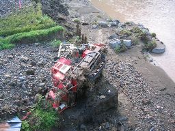 茶良瀬橋の下に転がる耕運機。 |