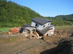 茶良瀬橋。 前後すべての区間で路肩崩壊や道路陥没、土砂崩れ、流木などの被害跡が残る。 災害後1ヶ月ほど経つが、被害の規模が大きすぎるため、ほとんど手をつけられていない状態。 地図 |