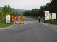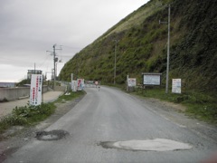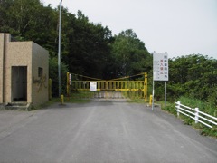 舗装路が尽きた地点でゲートが現れ通行止め。