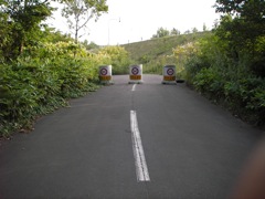 終点から先にゴルフ場に続く道あり。